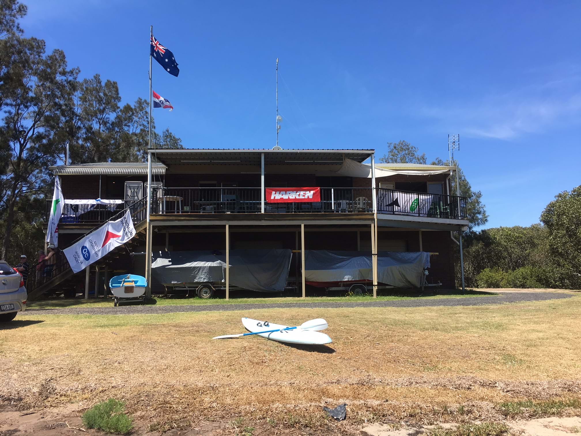 Saratoga Sailing Club, established in 1972, is home to the traditional Hartley TS16 Trailer Sailer (1960), single handed Lasers (1970) and other small dinghy classes, as well ultra modern foiling International A-class Catamarans and Windsurfers, with sailing and racing on Sundays and other regatta days. We are friendly and competitive, and welcome new sailors of all ages and experience, members of other clubs for regattas, or anyone who just wants to join the fun!