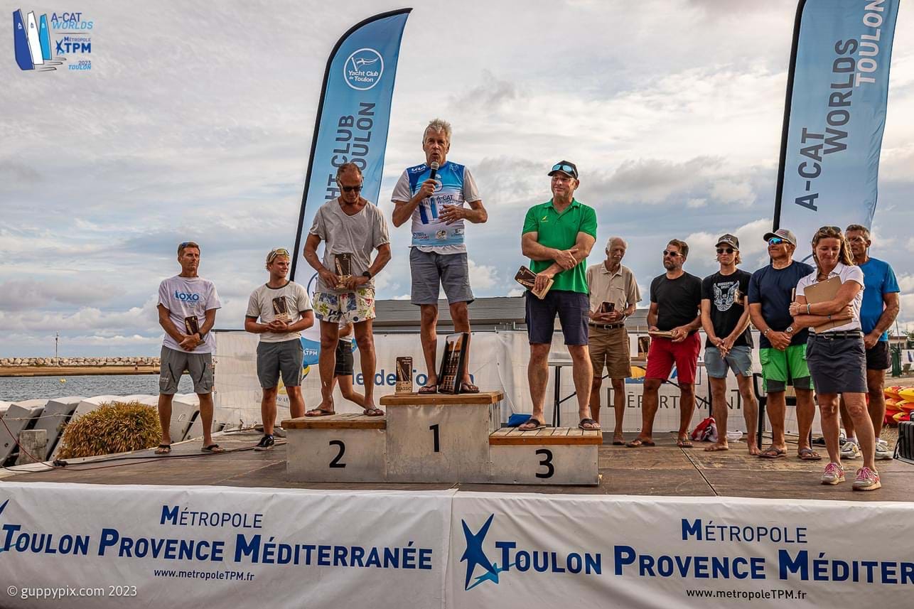 Scott Anderson and Darren Bundock achieved global recognition in the A-Class Catamaran World Championships in Toulon, France in September 2023. Scott took first place in the classic division and Darren took 3rd in the Open (foiling) division. With Saratoga Sailing Club taking two top 3 places in the two race categories, we can rightfully claim to be the premier A-Class Cat club in the world!